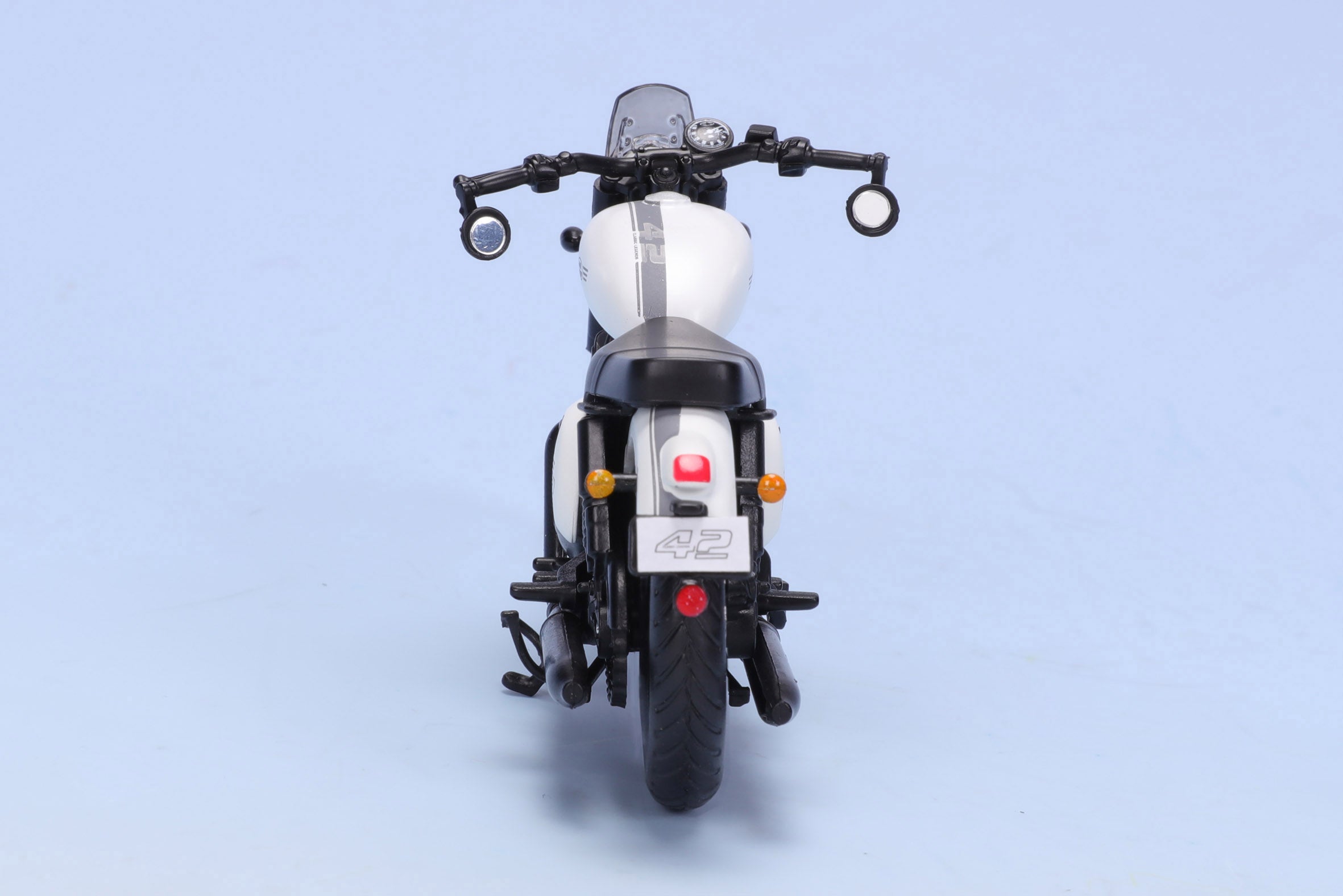 Features of JAWA 42 bike miniature scale model bike in Sirius White scale 1/18